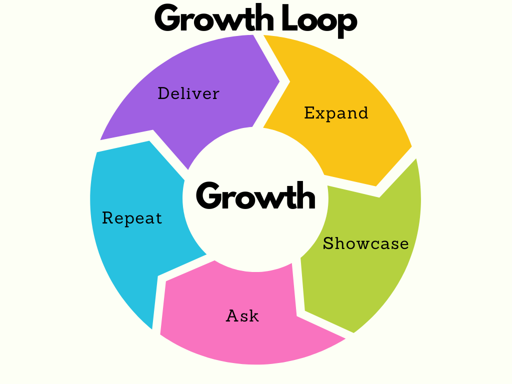 It is a loop. Repeating the loop gives the growth. Each time you deliver, expand, showcase, and ask, your scope grows a little more. Over time, those small wins compound and you will see growth.